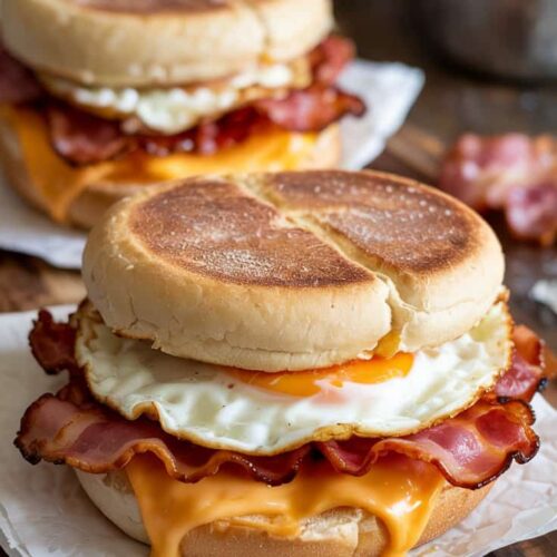 This sandwich brings together crispy bacon, a fried egg, and melted cheddar cheese on a toasted English muffin, creating a straightforward yet satisfying breakfast. The contrast of crunchy bacon with soft egg and gooey cheese makes every bite enjoyable, and it comes together quickly, perfect for busy mornings.