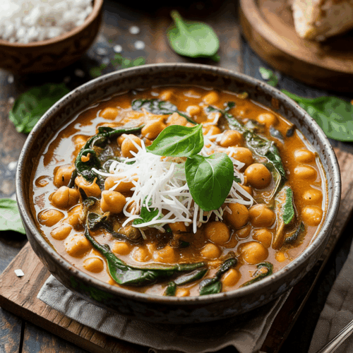 This vegan chickpea and spinach coconut curry brings together hearty chickpeas - similar to slow cooker vegan chili recipes that pack comforting protein - and fresh spinach in a creamy, spiced coconut sauce.