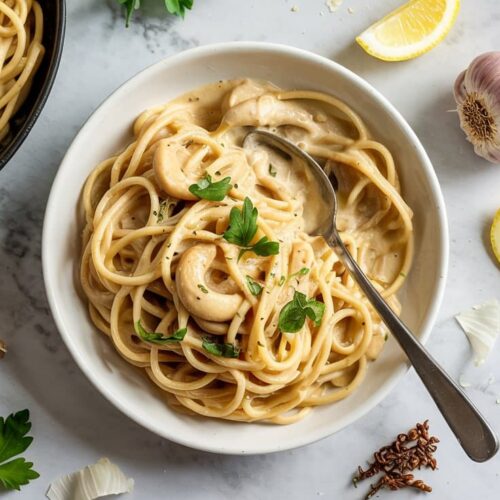 - Silky cashew cream - Blended soaked cashews create a thick, velvety sauce that coats each strand of pasta evenly.