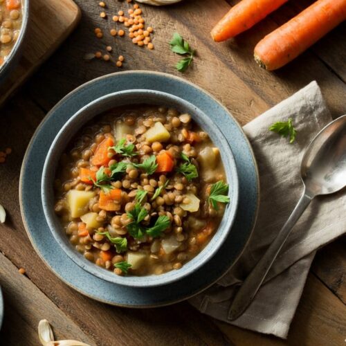 4. Mediterranean Lentil Soup with Lemon and Olive Oil