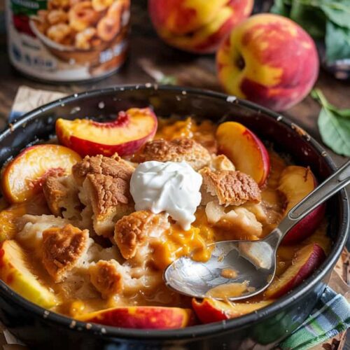 Canned peaches, boxed cake mix, and melted butter - that's it. You layer them in a dish, bake it until golden, and somehow end up with a bubbling, sweet, crisp-topped cobbler that tastes like you planned it.