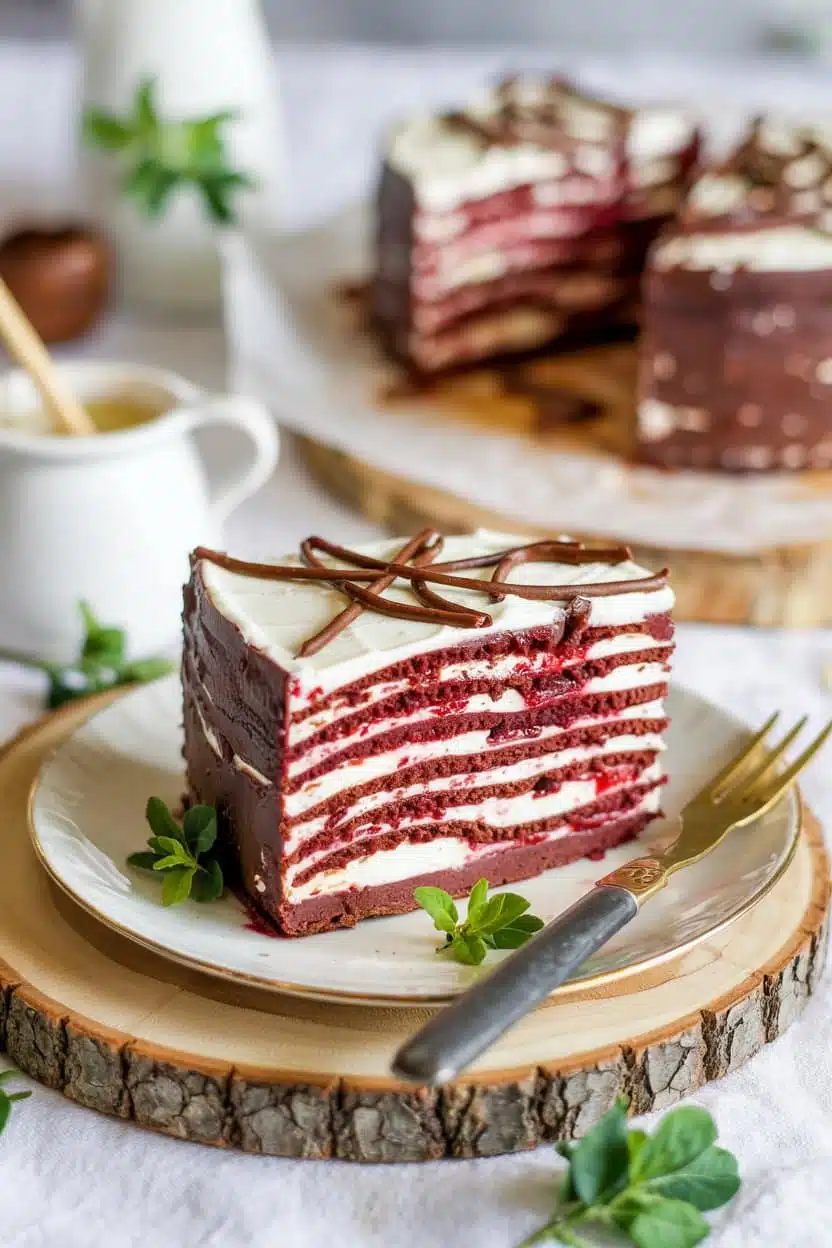 Coffee and chocolate team up in this layered dessert built with espresso-soaked cookies and fluffy mocha cream. Chilled overnight, it firms into a sliceable, café-style treat without any baking needed.