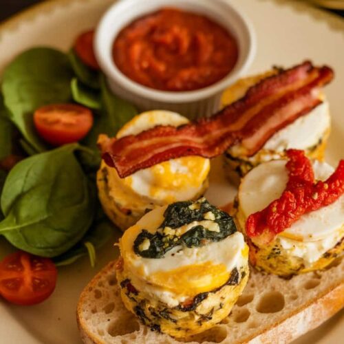 Egg Bites pairs well with Mixed Greens Salad, Avocado Toast, Fresh Fruit Salad, Greek Yogurt Parfait, and Crispy Bacon Strips.